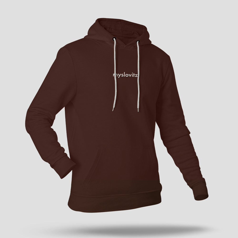 Brązowa bluza hoodie – klasyczna, ze ściągaczem, dobrze układający się kaptur. Z przodu białe logo zespołu.